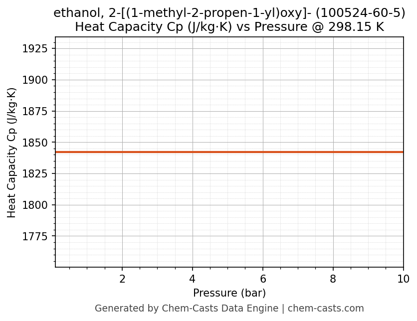 ![Heat Capacity (Cp) vs Pressure chart for ethanol, 2-[(1-methyl-2-propen-1-yl)oxy]- (CAS 100524-60-5)](https://chemcasts-prod.s3.ap-south-1.amazonaws.com/chem_plots_tconst/100524-60-5-cp-tconst.png)