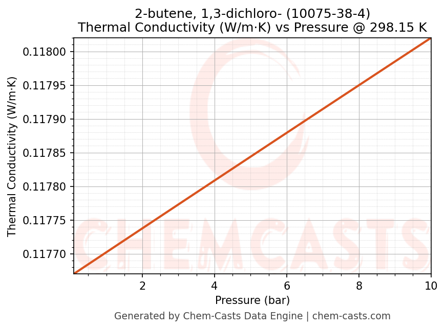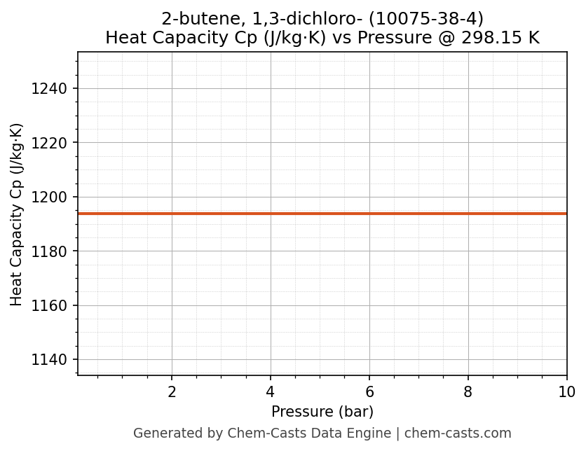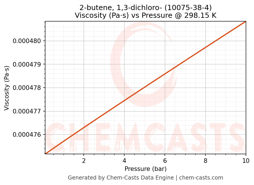 This page presents the pressure-dependent thermodynamic and transport properties of 2-butene, 1,3-dichloro- (CAS 10075-38-4) calculated at a constant temperature of 298 K (25 °C) over the pressure range 0.10-10 bar.