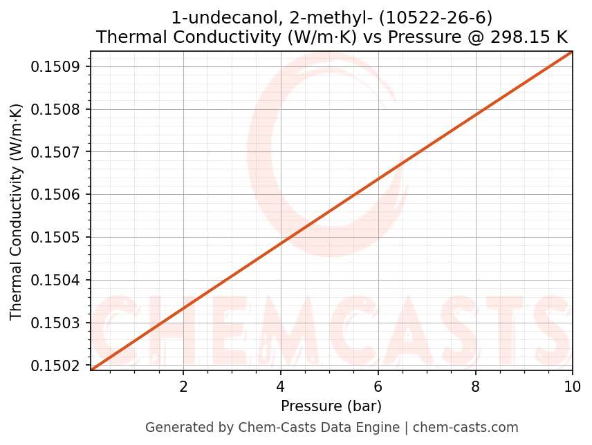 This page presents the pressure-dependent thermodynamic and transport properties of 1-undecanol, 2-methyl- (CAS 10522-26-6) calculated at a constant temperature of 298 K (25 °C) over the pressure range 0.10-10 bar.