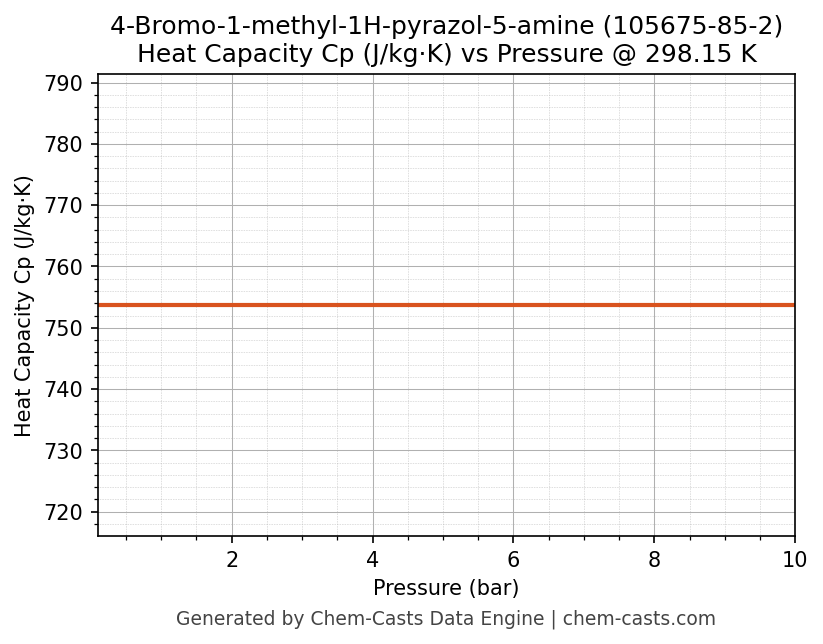 This page presents the pressure-dependent thermodynamic and transport properties of 4-Bromo-1-methyl-1H-pyrazol-5-amine (CAS 105675-85-2) calculated at a constant temperature of 298 K (25 °C) over the pressure range 0.10-10 bar.