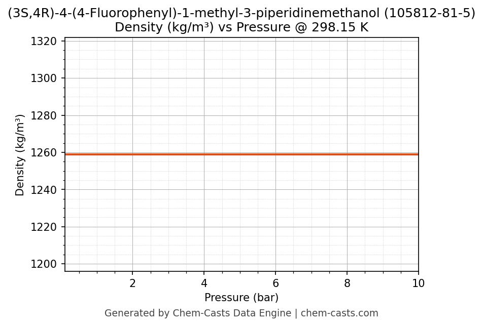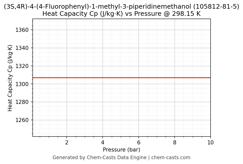 This page presents the pressure-dependent thermodynamic and transport properties of (3S,4R)-4-(4-Fluorophenyl)-1-methyl-3-piperidinemethanol (CAS 105812-81-5) calculated at a constant temperature of 298 K (25 °C) over the pressure range 0.10-10 bar.