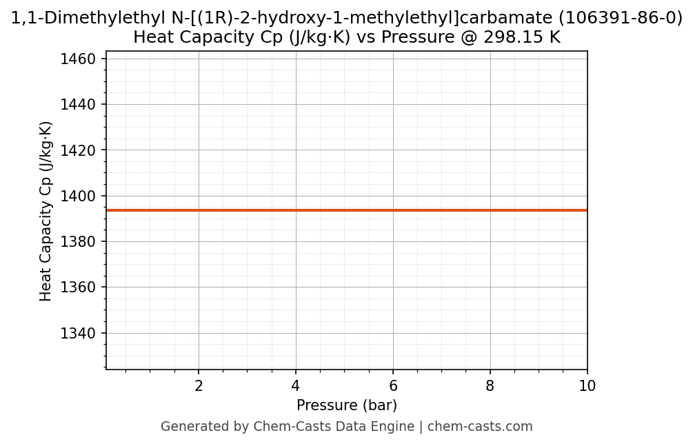 This page presents the pressure-dependent thermodynamic and transport properties of 1,1-Dimethylethyl N-[(1R)-2-hydroxy-1-methylethyl]carbamate (CAS 106391-86-0) calculated at a constant temperature of 298 K (25 °C) over the pressure range 0.10-10 bar.