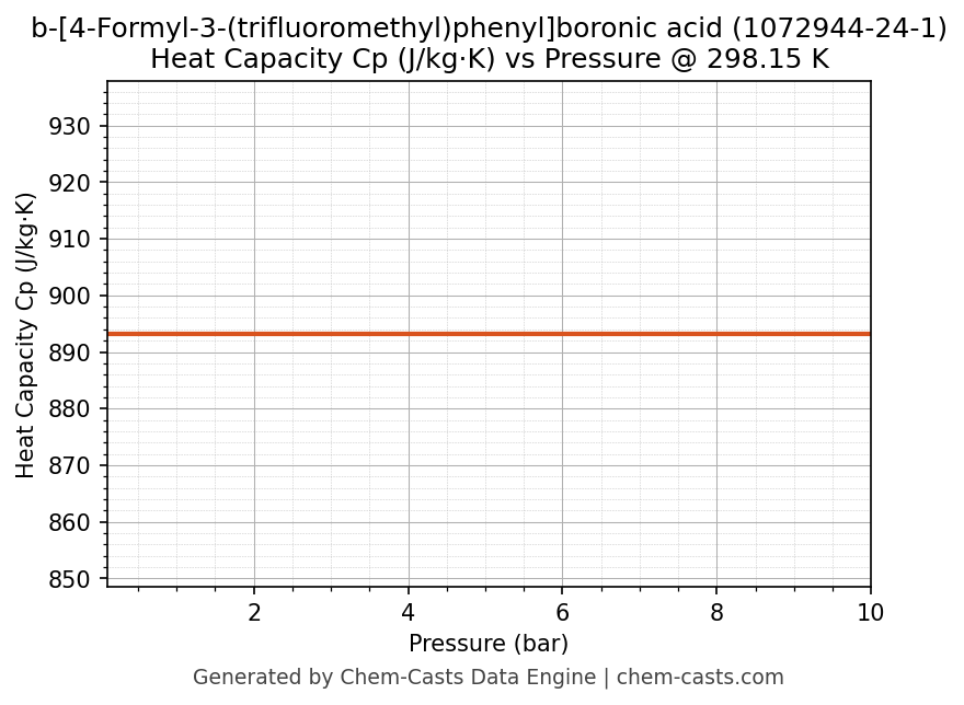 This page presents the pressure-dependent thermodynamic and transport properties of b-[4-Formyl-3-(trifluoromethyl)phenyl]boronic acid (CAS 1072944-24-1) calculated at a constant temperature of 298 K (25 °C) over the pressure range 0.10-10 bar.