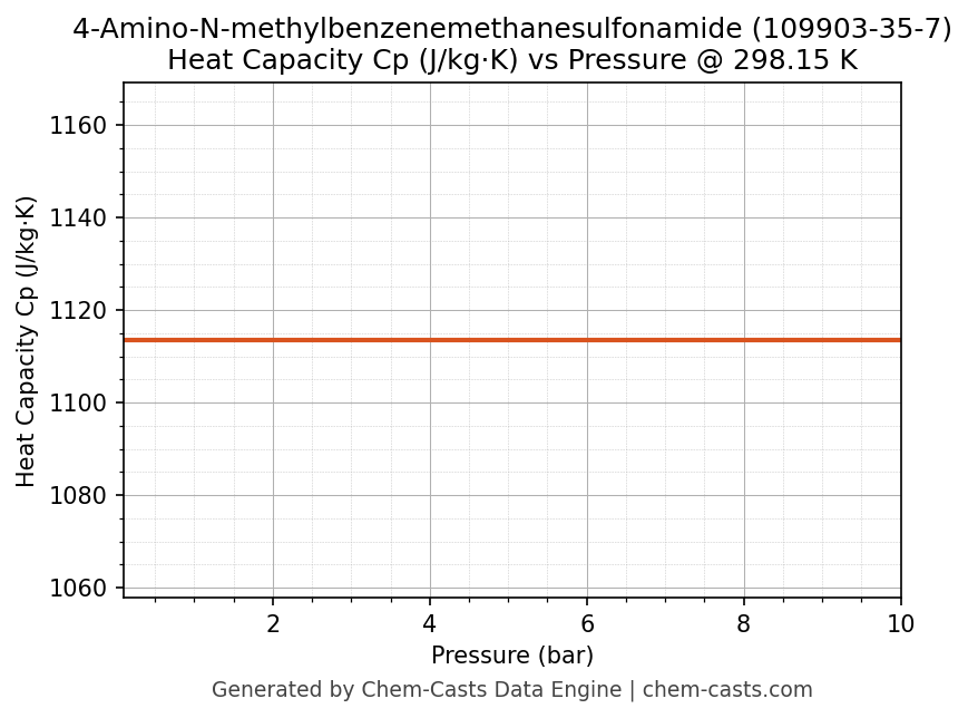 This page presents the pressure-dependent thermodynamic and transport properties of 4-Amino-N-methylbenzenemethanesulfonamide (CAS 109903-35-7) calculated at a constant temperature of 298 K (25 °C) over the pressure range 0.10-10 bar.