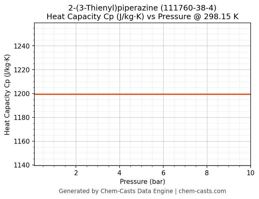 This page presents the pressure-dependent thermodynamic and transport properties of 2-(3-Thienyl)piperazine (CAS 111760-38-4) calculated at a constant temperature of 298 K (25 °C) over the pressure range 0.10-10 bar.