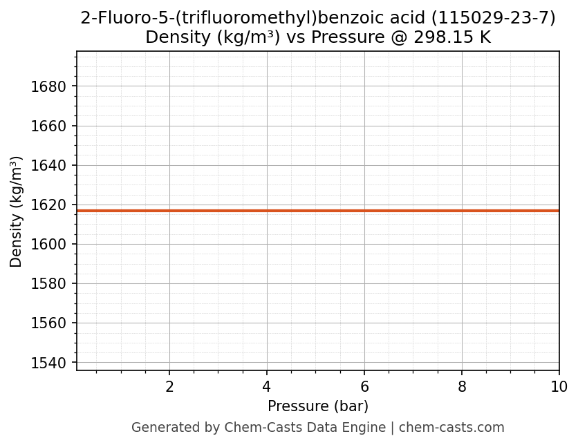 This page presents the pressure-dependent thermodynamic and transport properties of 2-Fluoro-5-(trifluoromethyl)benzoic acid (CAS 115029-23-7) calculated at a constant temperature of 298 K (25 °C) over the pressure range 0.10-10 bar.
