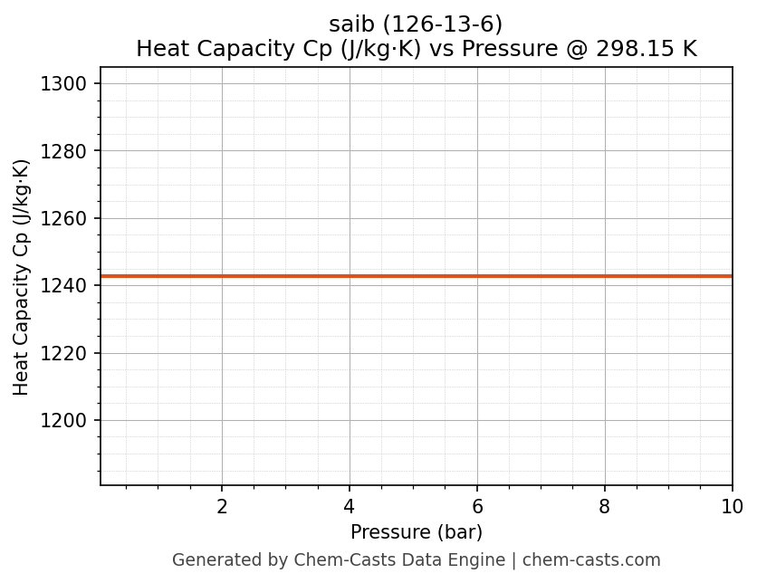 This page presents the pressure-dependent thermodynamic and transport properties of saib (CAS 126-13-6) calculated at a constant temperature of 298 K (25 °C) over the pressure range 0.10-10 bar.