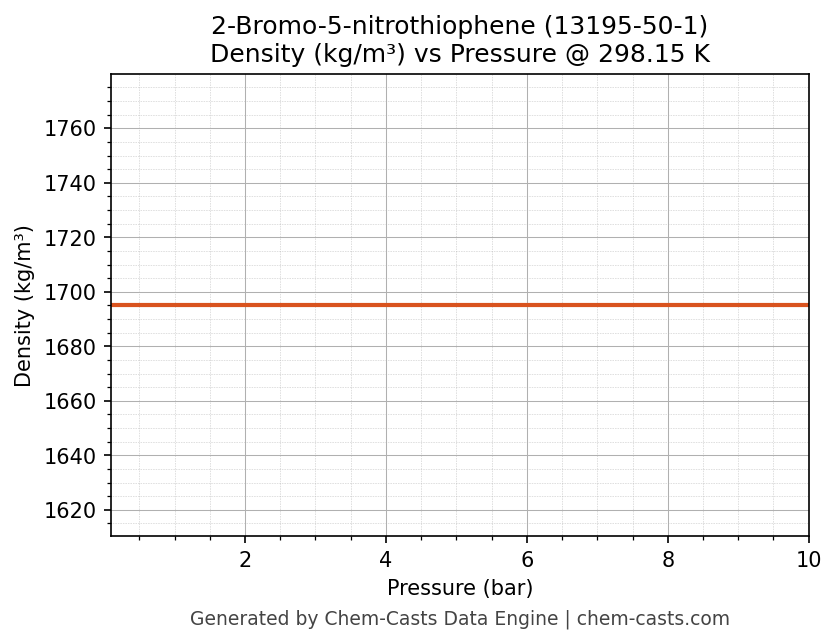 This page presents the pressure-dependent thermodynamic and transport properties of 2-Bromo-5-nitrothiophene (CAS 13195-50-1) calculated at a constant temperature of 298 K (25 °C) over the pressure range 0.10-10 bar.