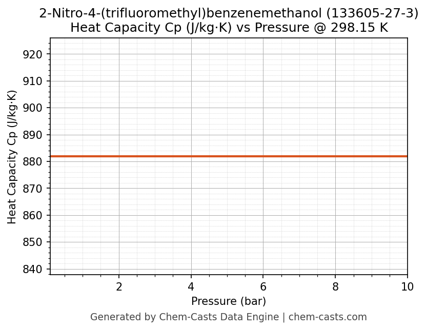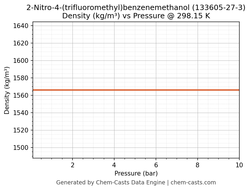This page presents the pressure-dependent thermodynamic and transport properties of 2-Nitro-4-(trifluoromethyl)benzenemethanol (CAS 133605-27-3) calculated at a constant temperature of 298 K (25 °C) over the pressure range 0.10-10 bar.