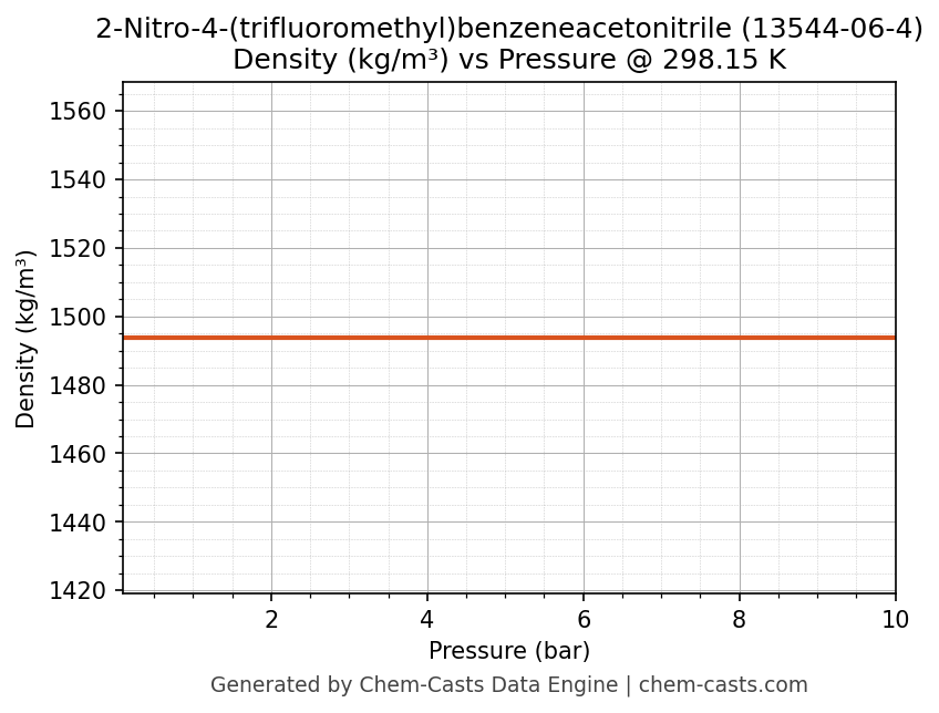 This page presents the pressure-dependent thermodynamic and transport properties of 2-Nitro-4-(trifluoromethyl)benzeneacetonitrile (CAS 13544-06-4) calculated at a constant temperature of 298 K (25 °C) over the pressure range 0.10-10 bar.