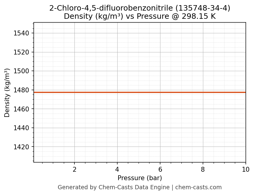 This page presents the pressure-dependent thermodynamic and transport properties of 2-Chloro-4,5-difluorobenzonitrile (CAS 135748-34-4) calculated at a constant temperature of 298 K (25 °C) over the pressure range 0.10-10 bar.
