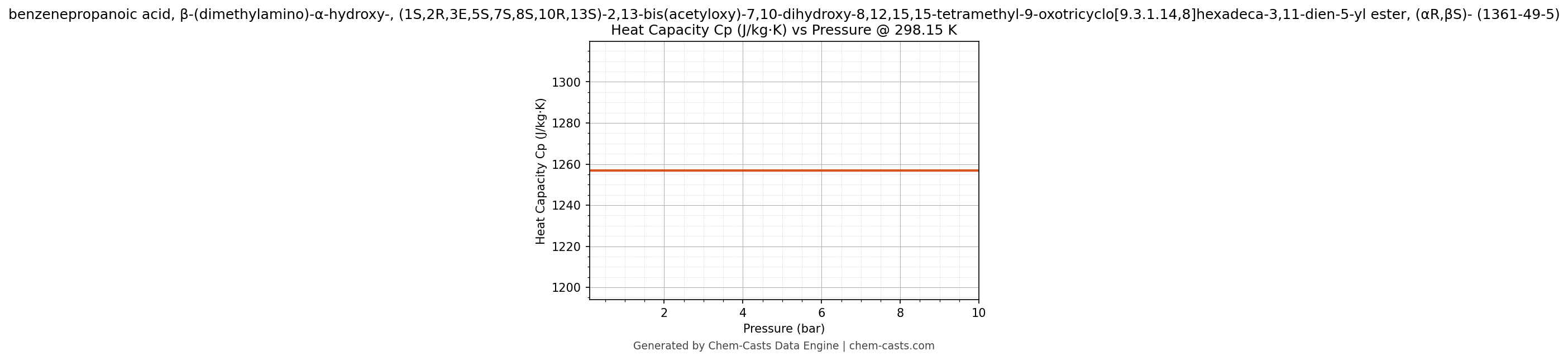 ![Heat Capacity (Cp) vs Pressure chart for benzenepropanoic acid, β-(dimethylamino)-α-hydroxy-, (1S,2R,3E,5S,7S,8S,10R,13S)-2,13-bis(acetyloxy)-7,10-dihydroxy-8,12,15,15-tetramethyl-9-oxotricyclo[9.3.1.14,8]hexadeca-3,11-dien-5-yl ester, (αR,βS)- (CAS 1361-49-5)](https://chemcasts-prod.s3.ap-south-1.amazonaws.com/chem_plots_tconst/1361-49-5-cp-tconst.png)