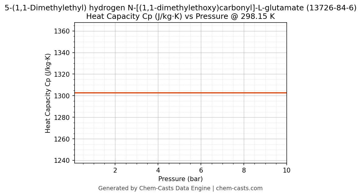 This page presents the pressure-dependent thermodynamic and transport properties of 5-(1,1-Dimethylethyl) hydrogen N-[(1,1-dimethylethoxy)carbonyl]-L-glutamate (CAS 13726-84-6) calculated at a constant temperature of 298 K (25 °C) over the pressure range 0.10-10 bar.