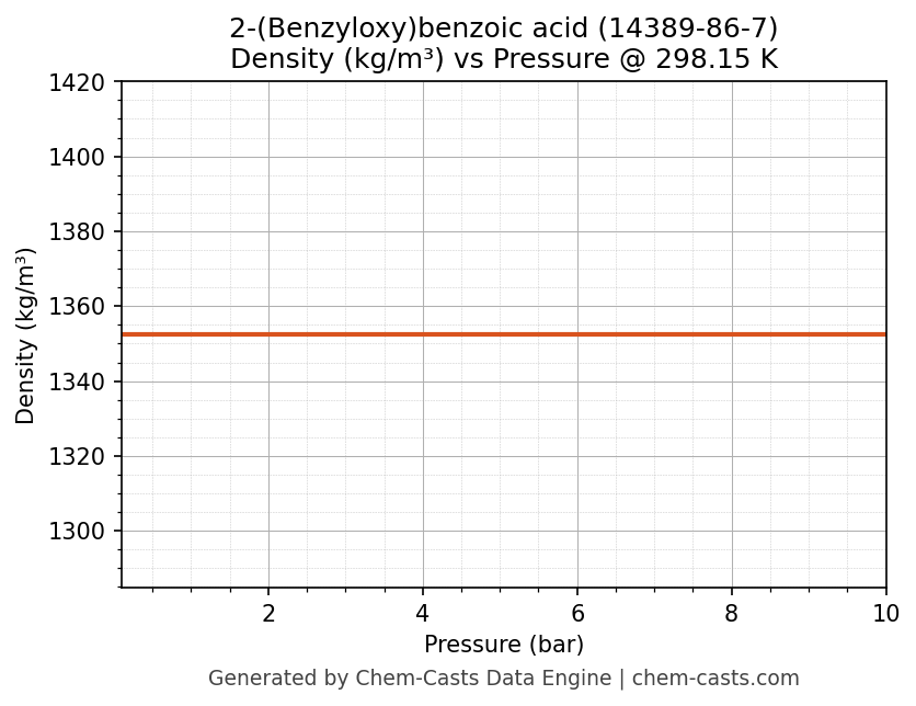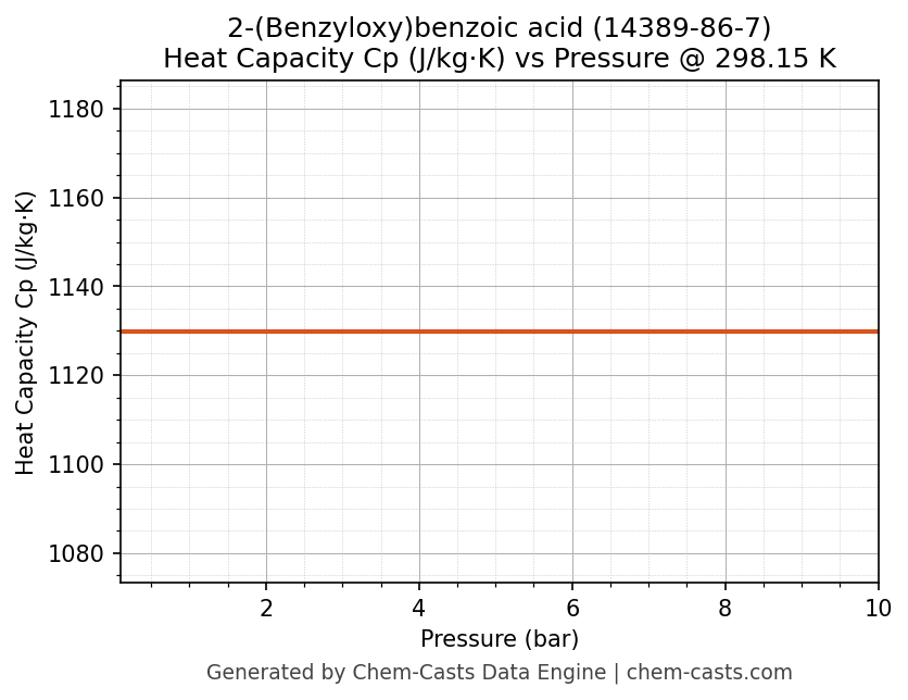 This page presents the pressure-dependent thermodynamic and transport properties of 2-(Benzyloxy)benzoic acid (CAS 14389-86-7) calculated at a constant temperature of 298 K (25 °C) over the pressure range 0.10-10 bar.