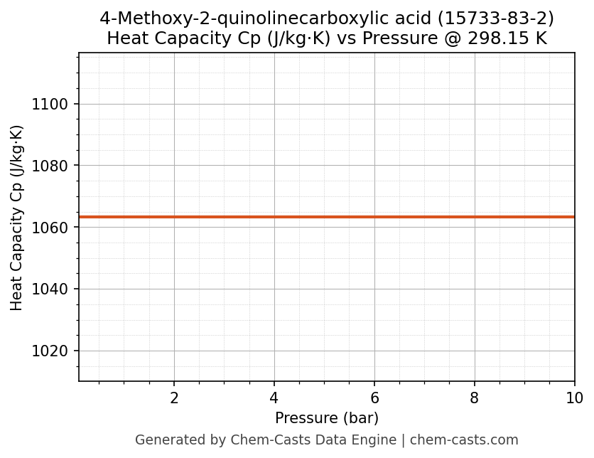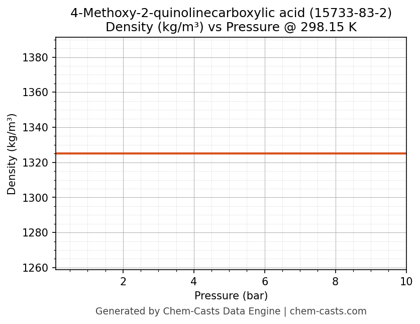 This page presents the pressure-dependent thermodynamic and transport properties of 4-Methoxy-2-quinolinecarboxylic acid (CAS 15733-83-2) calculated at a constant temperature of 298 K (25 °C) over the pressure range 0.10-10 bar.