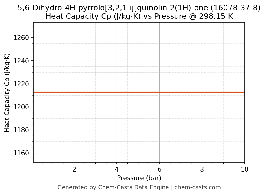 This page presents the pressure-dependent thermodynamic and transport properties of 5,6-Dihydro-4H-pyrrolo[3,2,1-ij]quinolin-2(1H)-one (CAS 16078-37-8) calculated at a constant temperature of 298 K (25 °C) over the pressure range 0.10-10 bar.