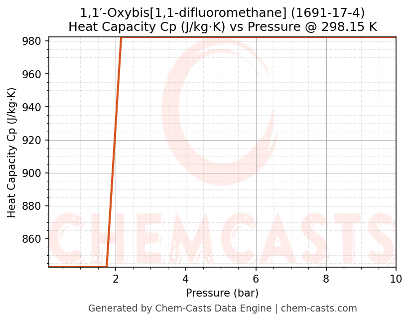 ![Heat Capacity (Cp) vs Pressure chart for 1,1′-Oxybis[1,1-difluoromethane] (CAS 1691-17-4)](https://chemcasts-prod.s3.ap-south-1.amazonaws.com/chem_plots_tconst/1691-17-4-cp-tconst.png)