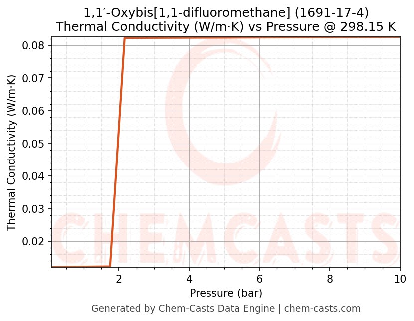 ![Thermal Conductivity vs Pressure chart for 1,1′-Oxybis[1,1-difluoromethane] (CAS 1691-17-4)](https://chemcasts-prod.s3.ap-south-1.amazonaws.com/chem_plots_tconst/1691-17-4-thermal_conductivity-tconst.png)