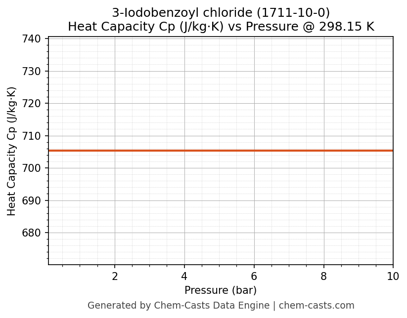 This page presents the pressure-dependent thermodynamic and transport properties of 3-Iodobenzoyl chloride (CAS 1711-10-0) calculated at a constant temperature of 298 K (25 °C) over the pressure range 0.10-10 bar.