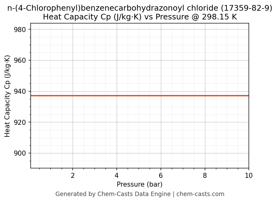 This page presents the pressure-dependent thermodynamic and transport properties of n-(4-Chlorophenyl)benzenecarbohydrazonoyl chloride (CAS 17359-82-9) calculated at a constant temperature of 298 K (25 °C) over the pressure range 0.10-10 bar.