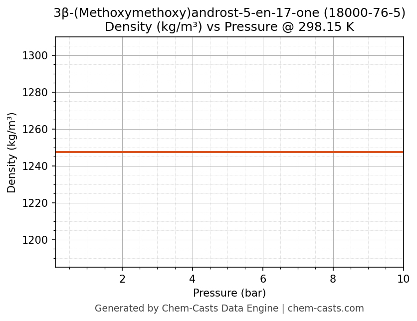 This page presents the pressure-dependent thermodynamic and transport properties of 3β-(Methoxymethoxy)androst-5-en-17-one (CAS 18000-76-5) calculated at a constant temperature of 298 K (25 °C) over the pressure range 0.10-10 bar.