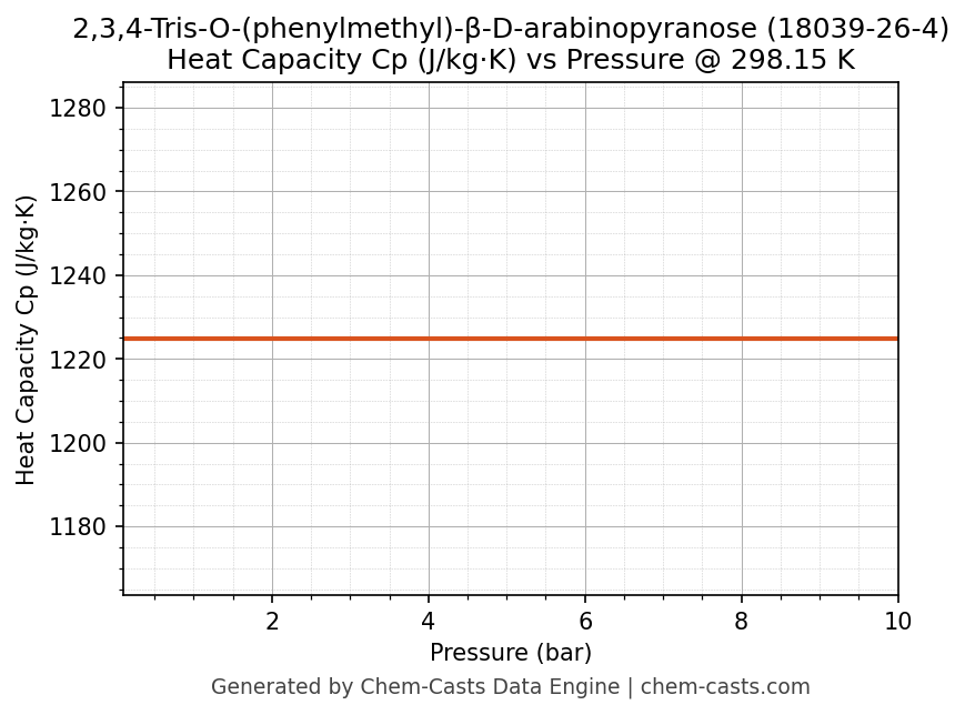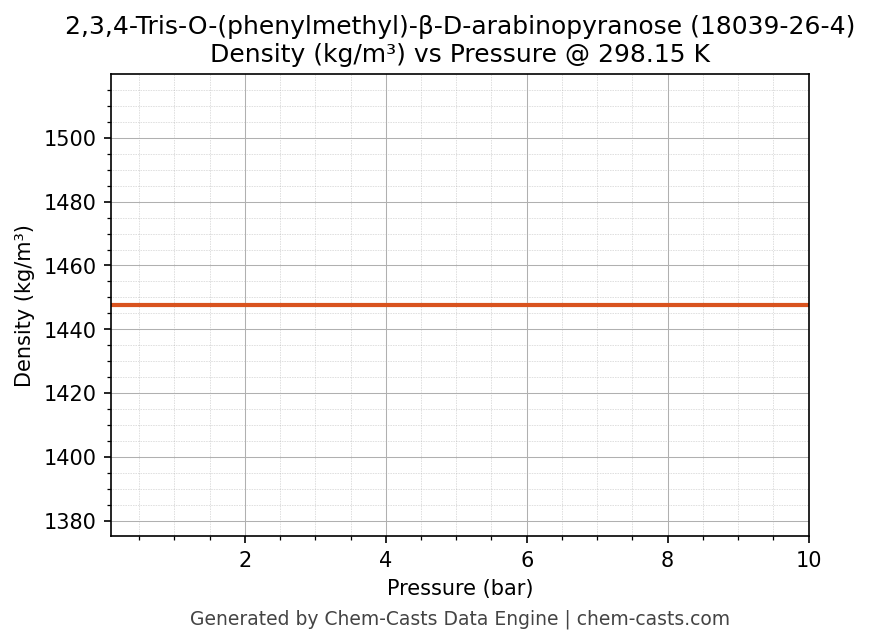 This page presents the pressure-dependent thermodynamic and transport properties of 2,3,4-Tris-O-(phenylmethyl)-β-D-arabinopyranose (CAS 18039-26-4) calculated at a constant temperature of 298 K (25 °C) over the pressure range 0.10-10 bar.