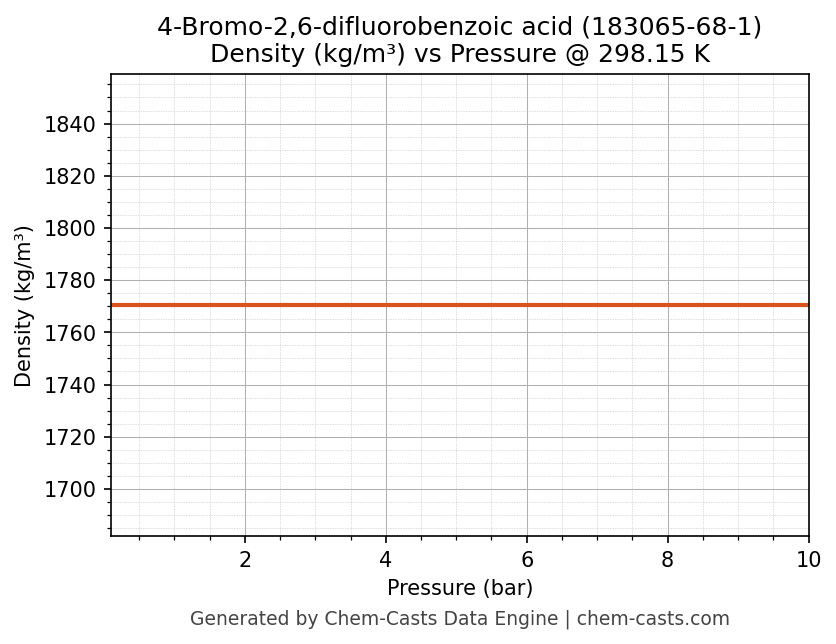 This page presents the pressure-dependent thermodynamic and transport properties of 4-Bromo-2,6-difluorobenzoic acid (CAS 183065-68-1) calculated at a constant temperature of 298 K (25 °C) over the pressure range 0.10-10 bar.