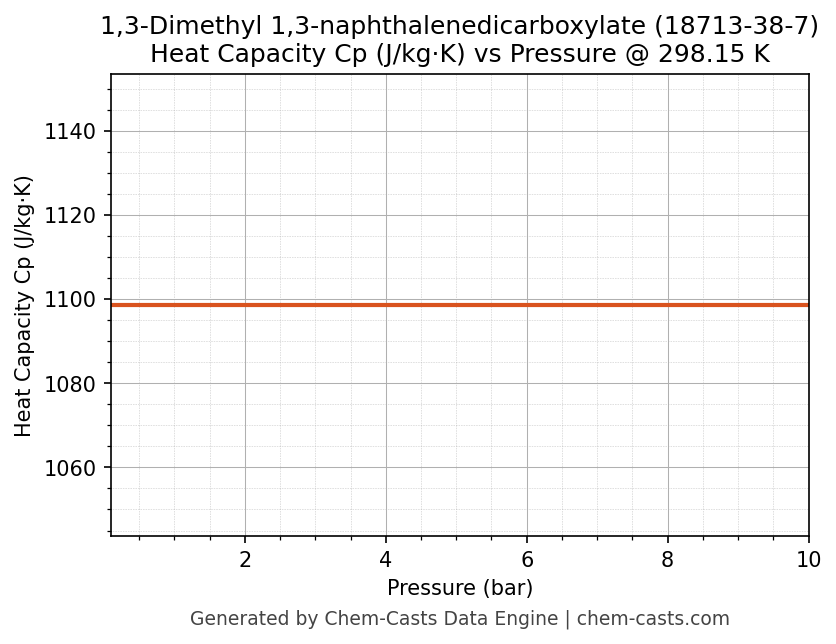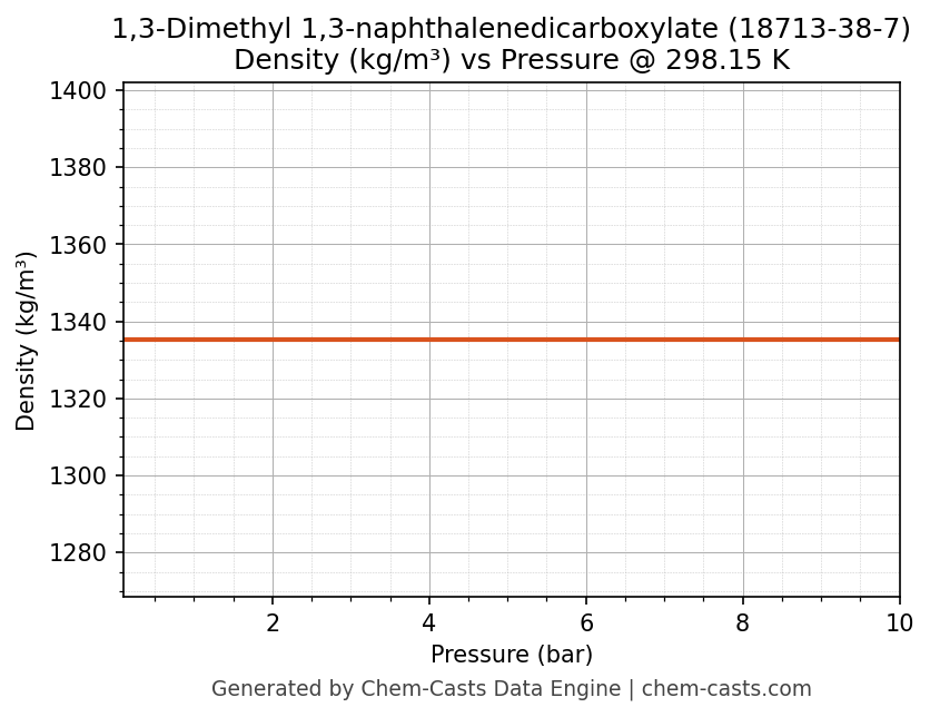 This page presents the pressure-dependent thermodynamic and transport properties of 1,3-Dimethyl 1,3-naphthalenedicarboxylate (CAS 18713-38-7) calculated at a constant temperature of 298 K (25 °C) over the pressure range 0.10-10 bar.