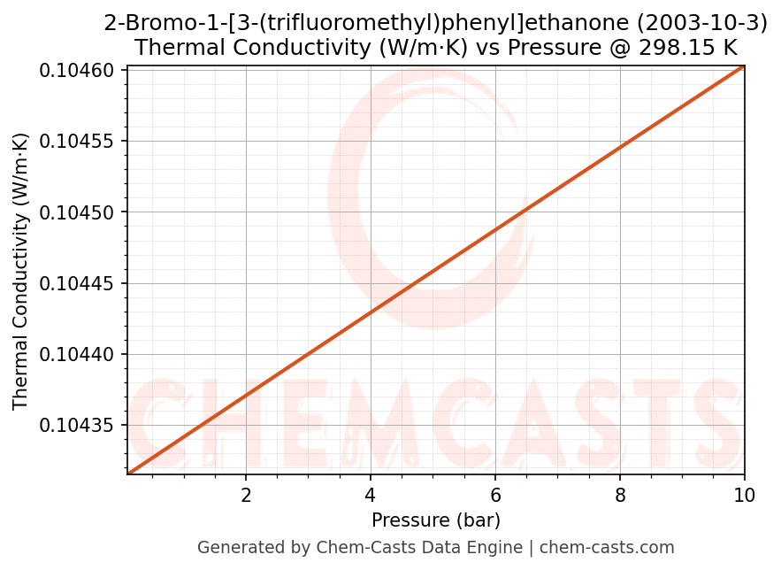 ![Thermal Conductivity vs Pressure chart for 2-Bromo-1-[3-(trifluoromethyl)phenyl]ethanone (CAS 2003-10-3)](https://chemcasts-prod.s3.ap-south-1.amazonaws.com/chem_plots_tconst/2003-10-3-thermal_conductivity-tconst.png)