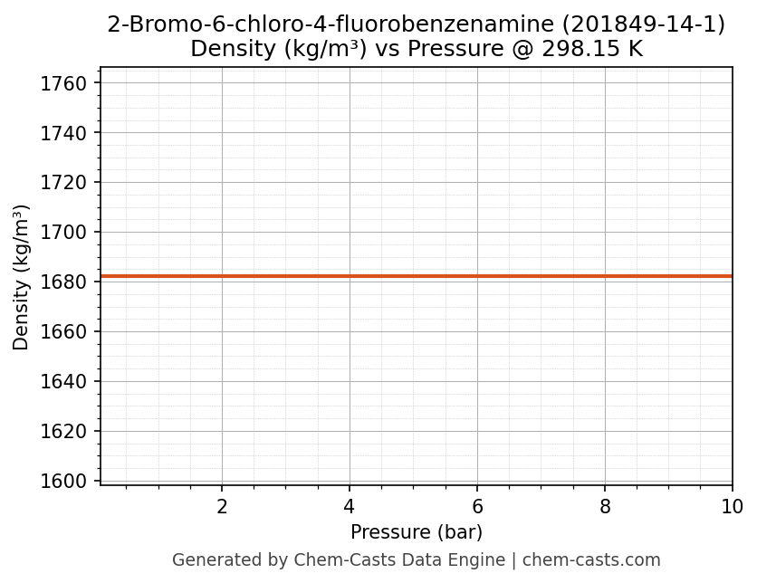 This page presents the pressure-dependent thermodynamic and transport properties of 2-Bromo-6-chloro-4-fluorobenzenamine (CAS 201849-14-1) calculated at a constant temperature of 298 K (25 °C) over the pressure range 0.10-10 bar.
