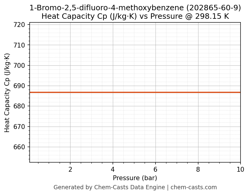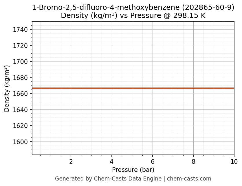 This page presents the pressure-dependent thermodynamic and transport properties of 1-Bromo-2,5-difluoro-4-methoxybenzene (CAS 202865-60-9) calculated at a constant temperature of 298 K (25 °C) over the pressure range 0.10-10 bar.
