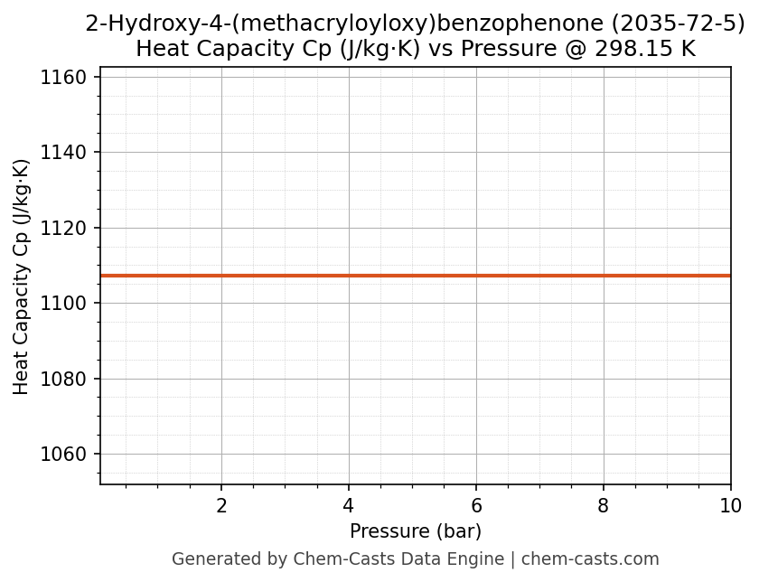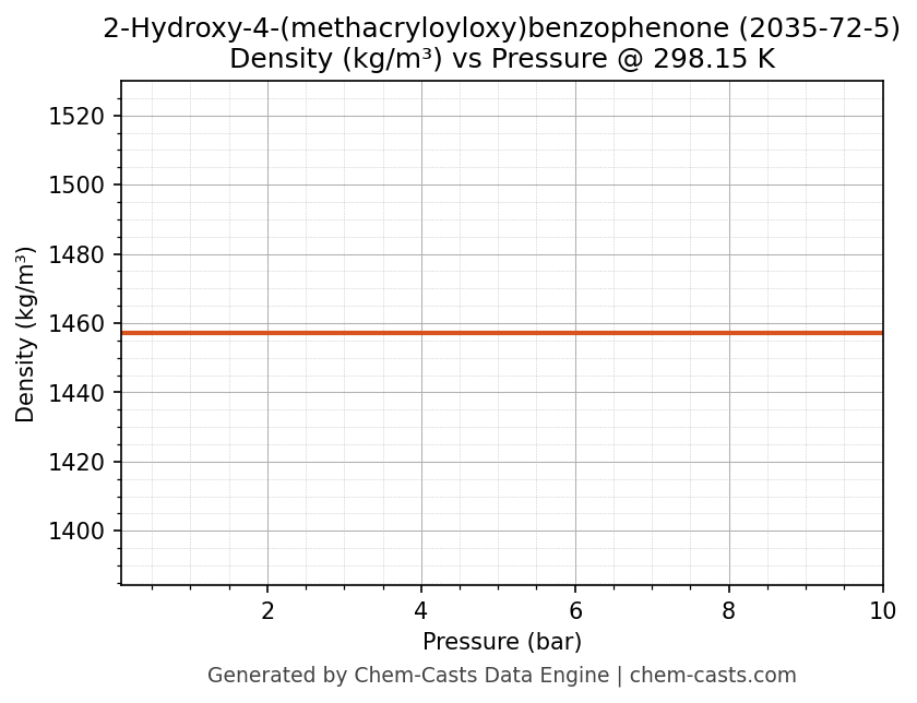 This page presents the pressure-dependent thermodynamic and transport properties of 2-Hydroxy-4-(methacryloyloxy)benzophenone (CAS 2035-72-5) calculated at a constant temperature of 298 K (25 °C) over the pressure range 0.10-10 bar.
