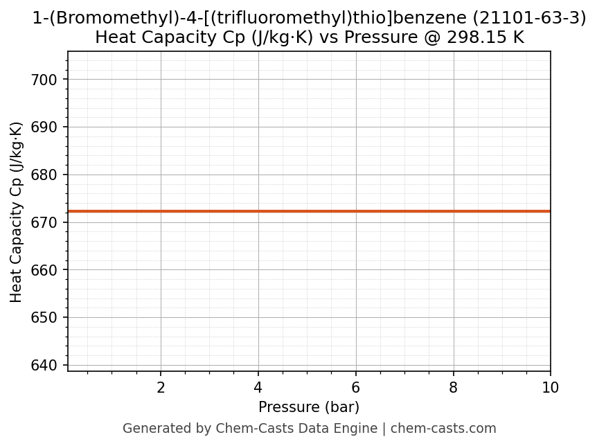 ![Heat Capacity (Cp) vs Pressure chart for 1-(Bromomethyl)-4-[(trifluoromethyl)thio]benzene (CAS 21101-63-3)](https://chemcasts-prod.s3.ap-south-1.amazonaws.com/chem_plots_tconst/21101-63-3-cp-tconst.png)