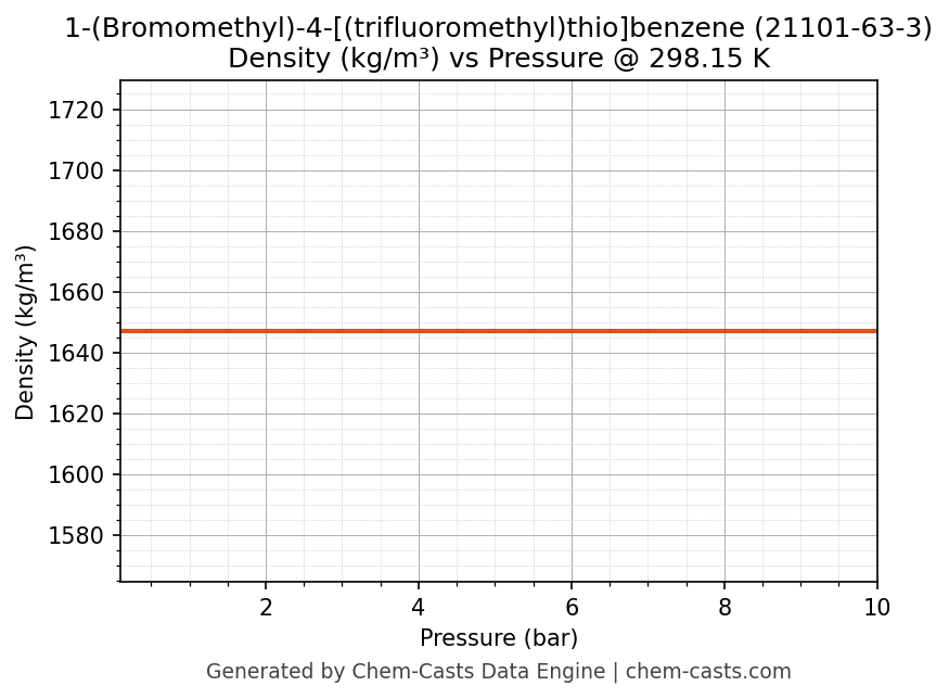 This page presents the pressure-dependent thermodynamic and transport properties of 1-(Bromomethyl)-4-[(trifluoromethyl)thio]benzene (CAS 21101-63-3) calculated at a constant temperature of 298 K (25 °C) over the pressure range 0.10-10 bar.