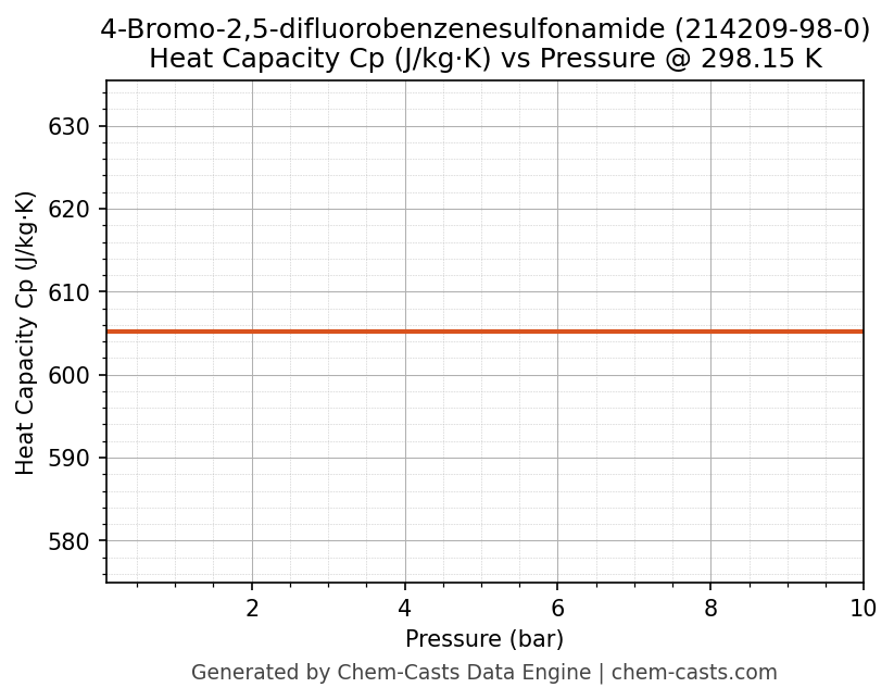 This page presents the pressure-dependent thermodynamic and transport properties of 4-Bromo-2,5-difluorobenzenesulfonamide (CAS 214209-98-0) calculated at a constant temperature of 298 K (25 °C) over the pressure range 0.10-10 bar.