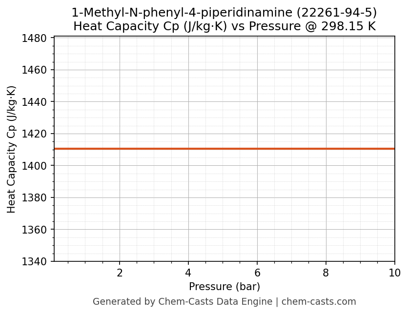This page presents the pressure-dependent thermodynamic and transport properties of 1-Methyl-N-phenyl-4-piperidinamine (CAS 22261-94-5) calculated at a constant temperature of 298 K (25 °C) over the pressure range 0.10-10 bar.