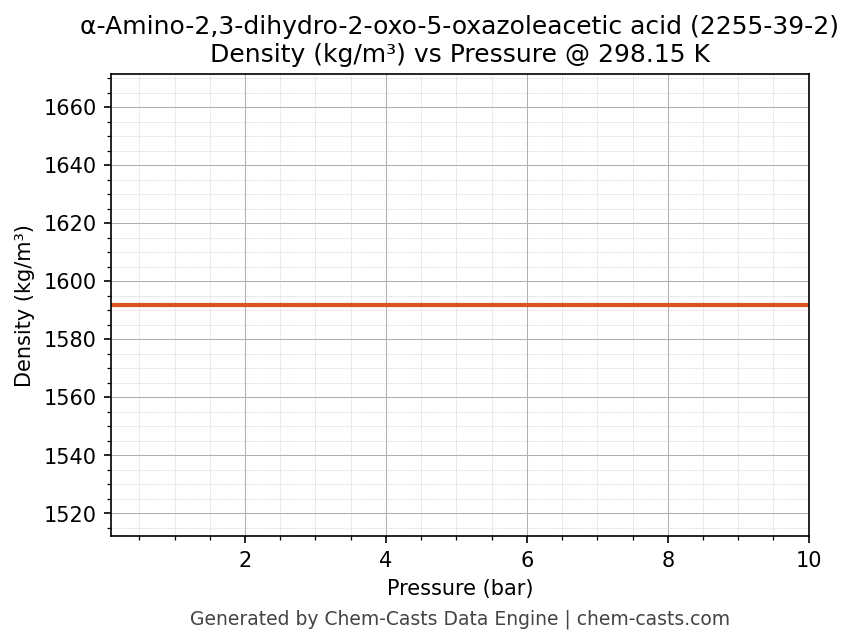 This page presents the pressure-dependent thermodynamic and transport properties of α-Amino-2,3-dihydro-2-oxo-5-oxazoleacetic acid (CAS 2255-39-2) calculated at a constant temperature of 298 K (25 °C) over the pressure range 0.10-10 bar.