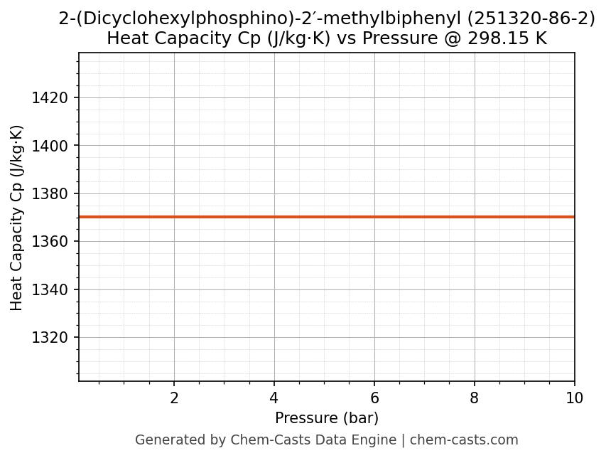 This page presents the pressure-dependent thermodynamic and transport properties of 2-(Dicyclohexylphosphino)-2′-methylbiphenyl (CAS 251320-86-2) calculated at a constant temperature of 298 K (25 °C) over the pressure range 0.10-10 bar.