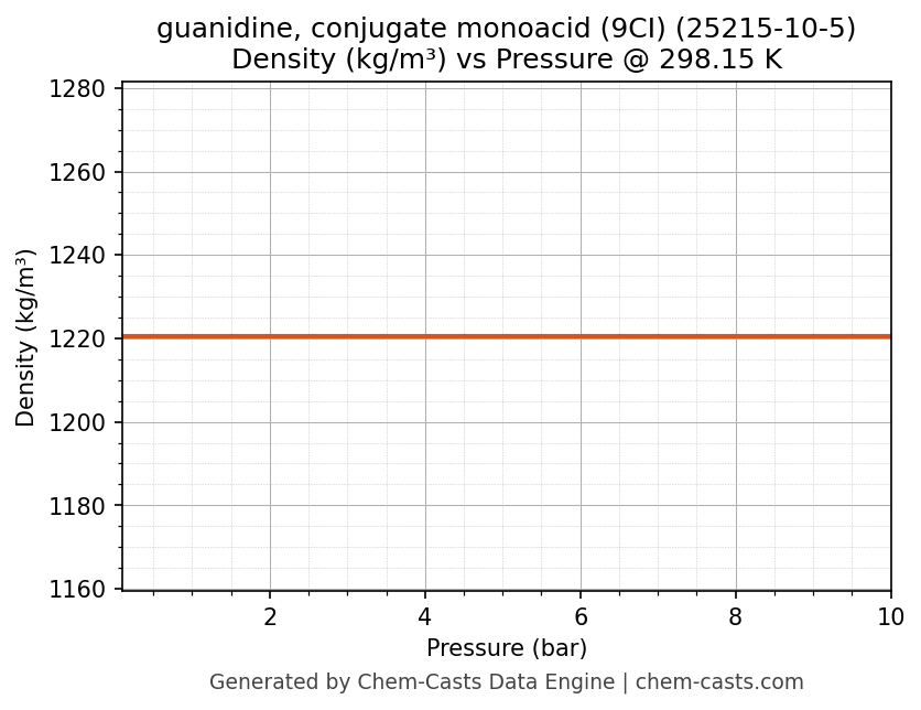 This page presents the pressure-dependent thermodynamic and transport properties of guanidine, conjugate monoacid (9CI) (CAS 25215-10-5) calculated at a constant temperature of 298 K (25 °C) over the pressure range 0.10-10 bar.