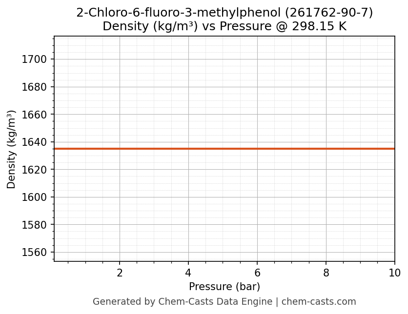 This page presents the pressure-dependent thermodynamic and transport properties of 2-Chloro-6-fluoro-3-methylphenol (CAS 261762-90-7) calculated at a constant temperature of 298 K (25 °C) over the pressure range 0.10-10 bar.