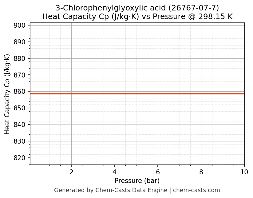 This page presents the pressure-dependent thermodynamic and transport properties of 3-Chlorophenylglyoxylic acid (CAS 26767-07-7) calculated at a constant temperature of 298 K (25 °C) over the pressure range 0.10-10 bar.
