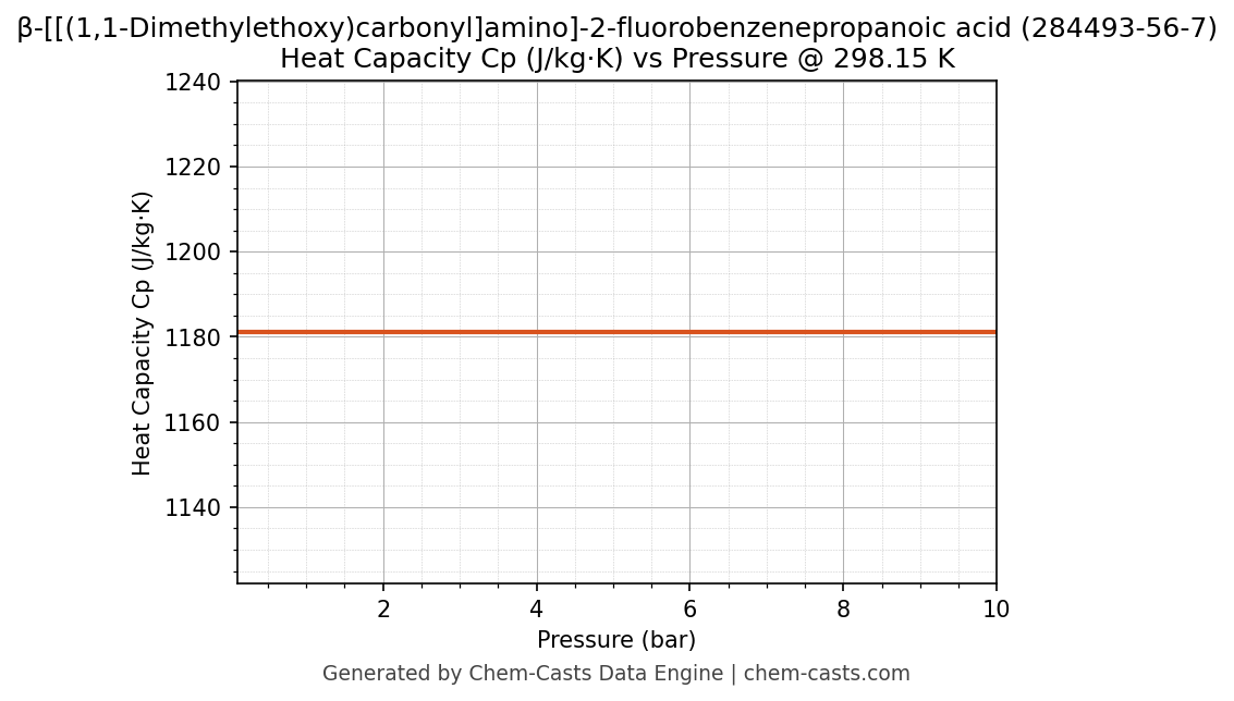This page presents the pressure-dependent thermodynamic and transport properties of β-[[(1,1-Dimethylethoxy)carbonyl]amino]-2-fluorobenzenepropanoic acid (CAS 284493-56-7) calculated at a constant temperature of 298 K (25 °C) over the pressure range 0.10-10 bar.