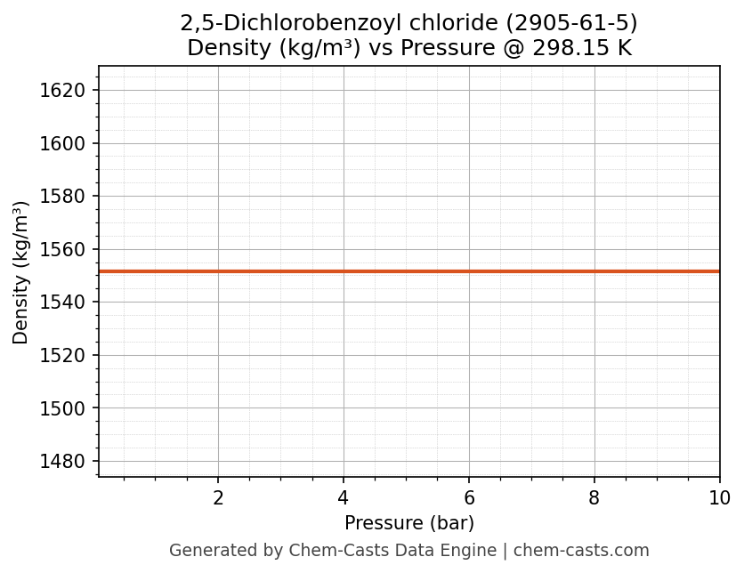 This page presents the pressure-dependent thermodynamic and transport properties of 2,5-Dichlorobenzoyl chloride (CAS 2905-61-5) calculated at a constant temperature of 298 K (25 °C) over the pressure range 0.10-10 bar.