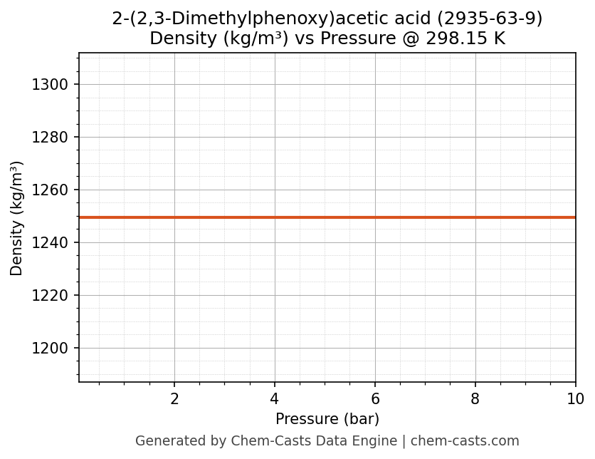 This page presents the pressure-dependent thermodynamic and transport properties of 2-(2,3-Dimethylphenoxy)acetic acid (CAS 2935-63-9) calculated at a constant temperature of 298 K (25 °C) over the pressure range 0.10-10 bar.