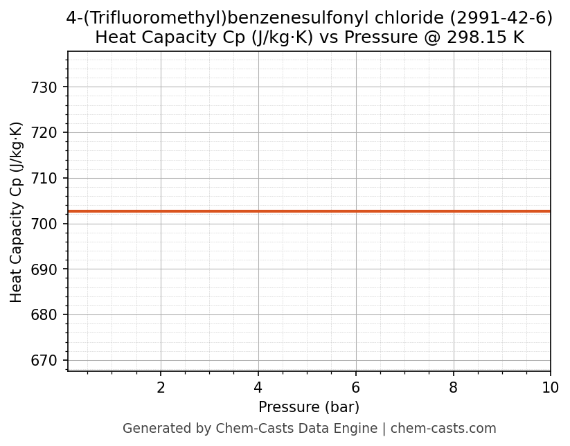This page presents the pressure-dependent thermodynamic and transport properties of 4-(Trifluoromethyl)benzenesulfonyl chloride (CAS 2991-42-6) calculated at a constant temperature of 298 K (25 °C) over the pressure range 0.10-10 bar.