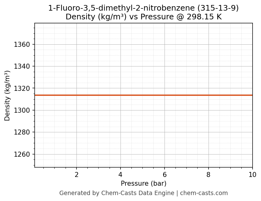 This page presents the pressure-dependent thermodynamic and transport properties of 1-Fluoro-3,5-dimethyl-2-nitrobenzene (CAS 315-13-9) calculated at a constant temperature of 298 K (25 °C) over the pressure range 0.10-10 bar.