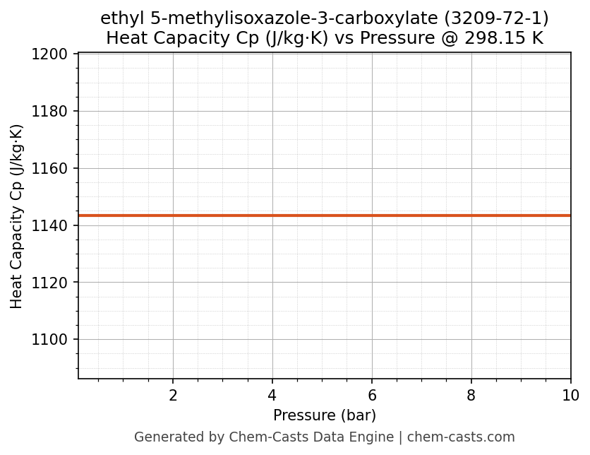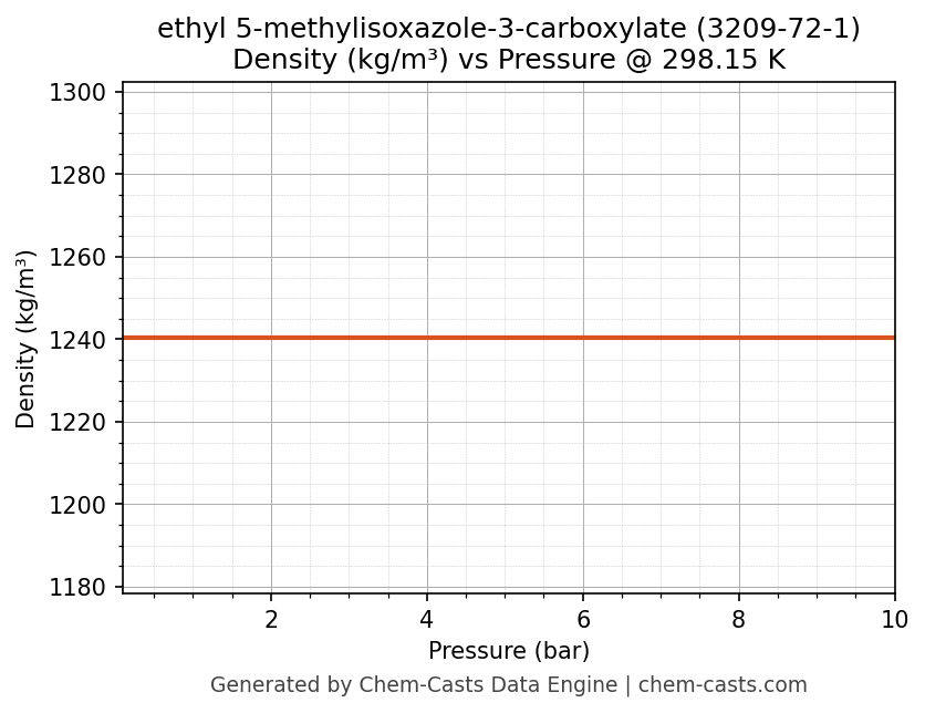 This page presents the pressure-dependent thermodynamic and transport properties of ethyl 5-methylisoxazole-3-carboxylate (CAS 3209-72-1) calculated at a constant temperature of 298 K (25 °C) over the pressure range 0.10-10 bar.
