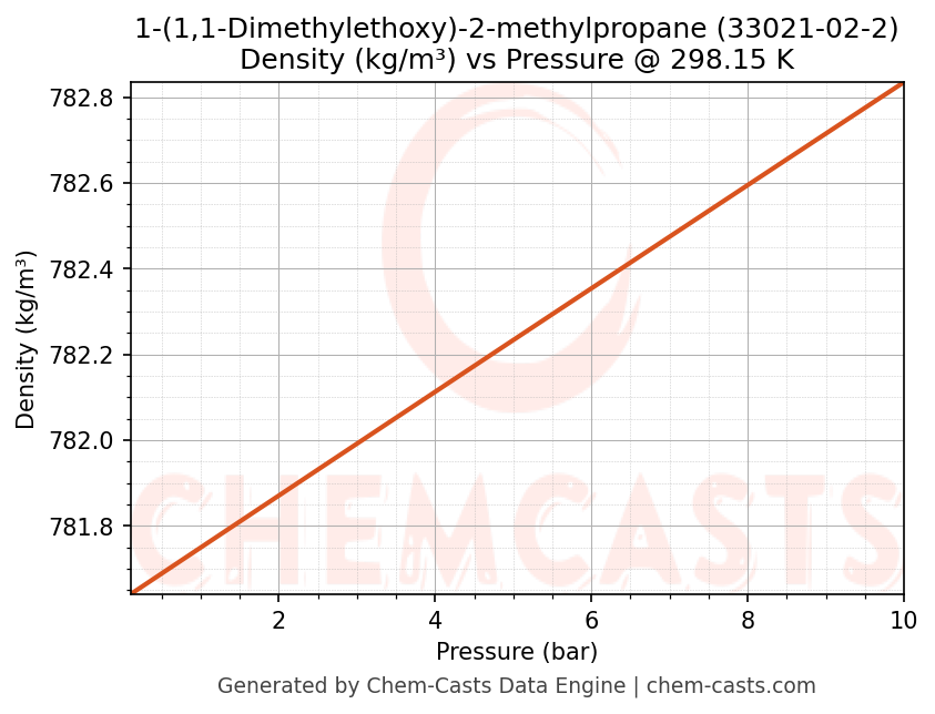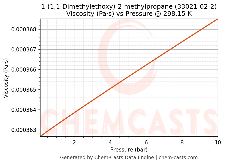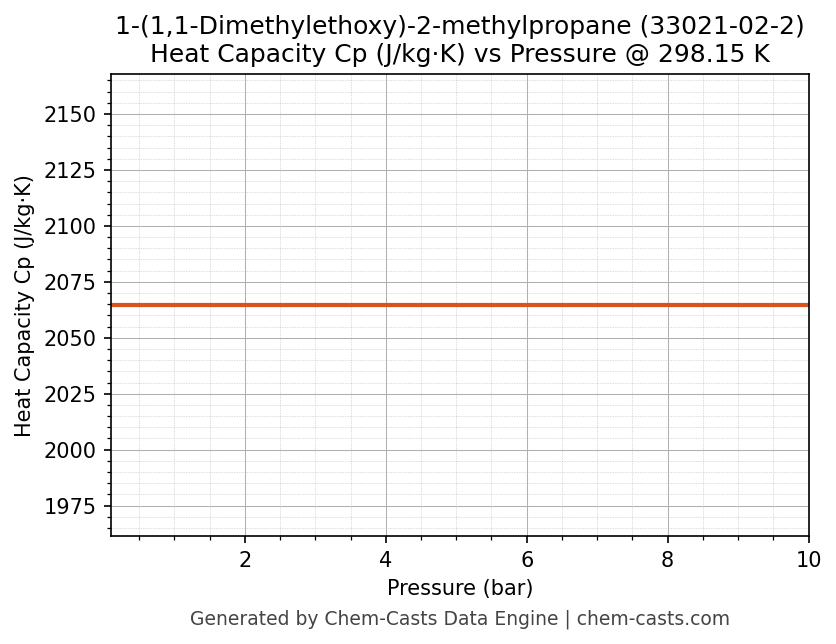 This page presents the pressure-dependent thermodynamic and transport properties of 1-(1,1-Dimethylethoxy)-2-methylpropane (CAS 33021-02-2) calculated at a constant temperature of 298 K (25 °C) over the pressure range 0.10-10 bar.