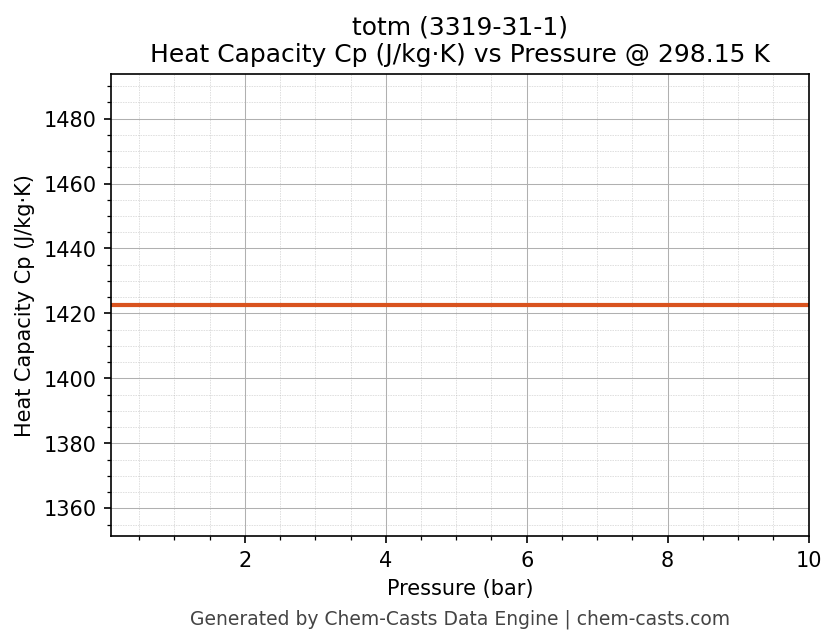 This page presents the pressure-dependent thermodynamic and transport properties of totm (CAS 3319-31-1) calculated at a constant temperature of 298 K (25 °C) over the pressure range 0.10-10 bar.