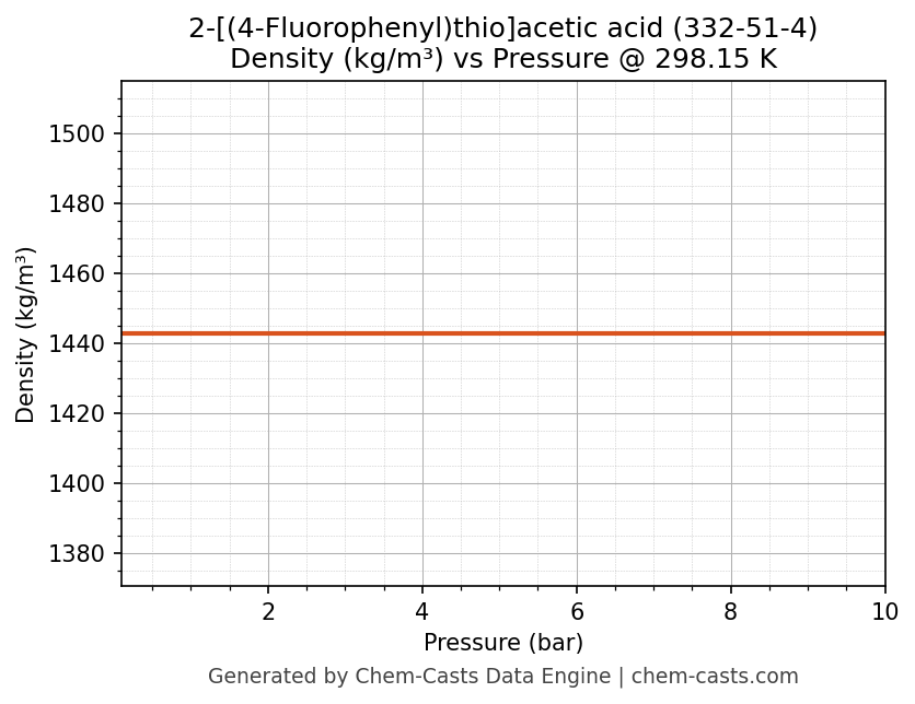 This page presents the pressure-dependent thermodynamic and transport properties of 2-[(4-Fluorophenyl)thio]acetic acid (CAS 332-51-4) calculated at a constant temperature of 298 K (25 °C) over the pressure range 0.10-10 bar.